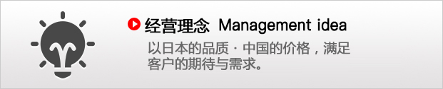 在中国国内,我司活用网络的力量,拥有以下『商社机能』,进出口业务,给当地制造企业发注,材料筹备,在『厂商机能』方面,从产品的开发到产品的组装,我司可以广泛地对应,通过当地筹备,日本技术,品质管理,我司已经实现了低成本高品质的理念。